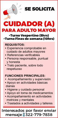 Puedo cuidar a adulto mayor, tengo experiencia, soy varón. 322 13 441-08.**