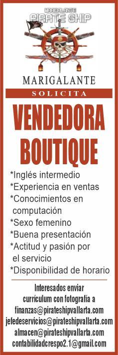 cerías y Marina: Vendedor de mostrador. Llamar al Tel. 322 20 379-12.+