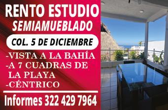 Pitillal Centro, amueblado, estudio, hermosa vista, no niños, no mascotas. $7,500. 322 18 19338.*