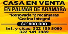 Palmar de Aramara, 2 Rec., baño, sala, comedor, cocina, patio de lavado, ventiladores, a/a, remodelado, recién pintado, se aceptan créditos. $1´860,000. 322 13 121-11.+