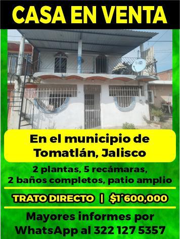 Tomatlán, Jalisco, 5 Rec., 2 baños, patio amplio, 2 pisos. $1´600,000. 322 12 753-57.+