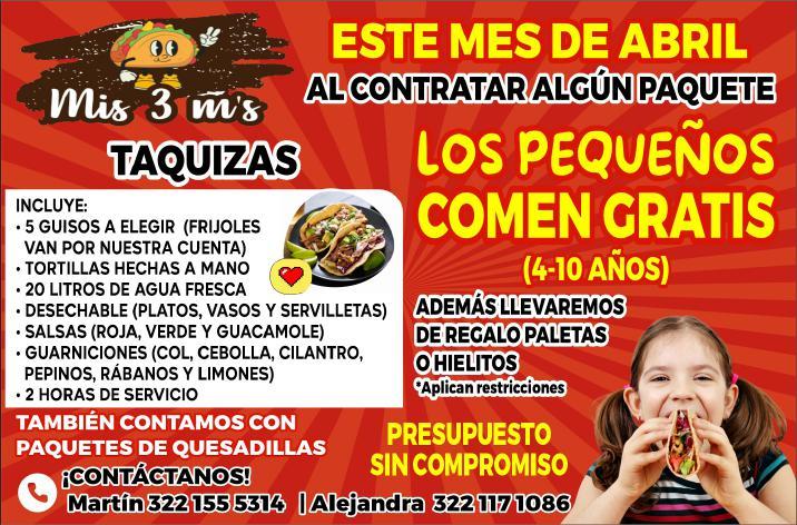 ¿Tienes una fiesta o evento? Nosotros te llevamos los tacos. Varios guisos a elegir, presupuesto sin compromiso. Inf. 322 11 71086, 322 15 553-14.+