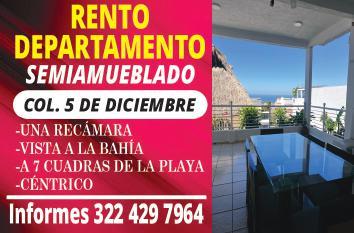 Puerto Vallarta Centro, 1 Rec., a/a, sala, recámara, cocineta, baño, amueblado. $12,000. 322 11 260-56, 322 35 644-29.**