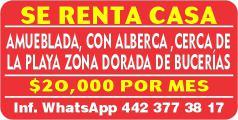 Francisco Villa, 3 Rec., amueblado, una cuadra Versalles, a/a. $18,000. 322 21 890-84.*