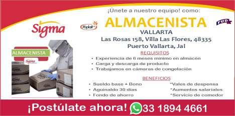 Únete a nuestro equipo como almacenista (cámaras de congelación), experiencia mínima 2 años, vivir en la zona Bahía de Banderas. Inf. 329 29 654-88.+