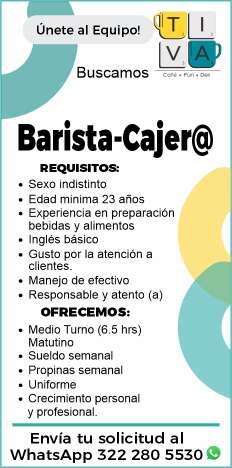 Únete a nuestro equipo de trabajo como cajera, mayor de 18 años, experiencia en el puesto, responsable, organizada. Informes. 322 27 64062.+