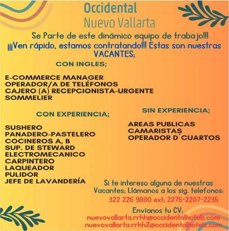 Únete a nuestro equipo como almacenista (cámaras de congelación), experiencia mínima 2 años, vivir en la zona Bahía de Banderas. Inf. 329 29 654-88.+