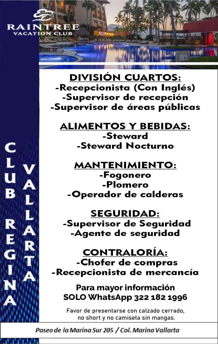 Solicitamos personal de limpieza, área de Nuevo Vallarta, de 18 a 55 años, experiencia mínima en limpieza, horario fijo, sueldo mensual $10,200 pesos. Informes. 322 29 710-46.+