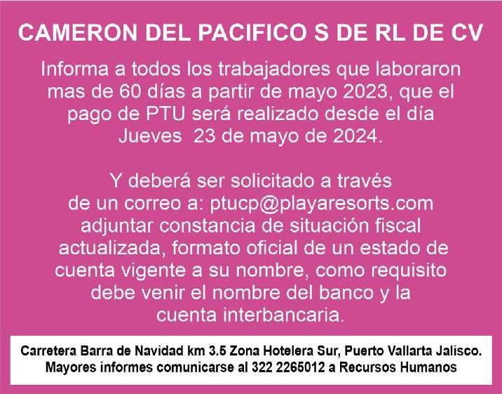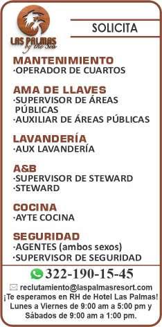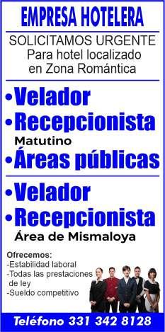 sados presentarse en Carretera Tepic #5735, Col. Las Juntas. Tel. 322 37 260-71.+