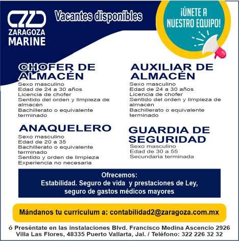 de dinero, responsable, carta de antecedentes no penales. Ofrecemos prestaciones de ley, uniformes, bono. Agendar cita. 322 17 498-98.+
