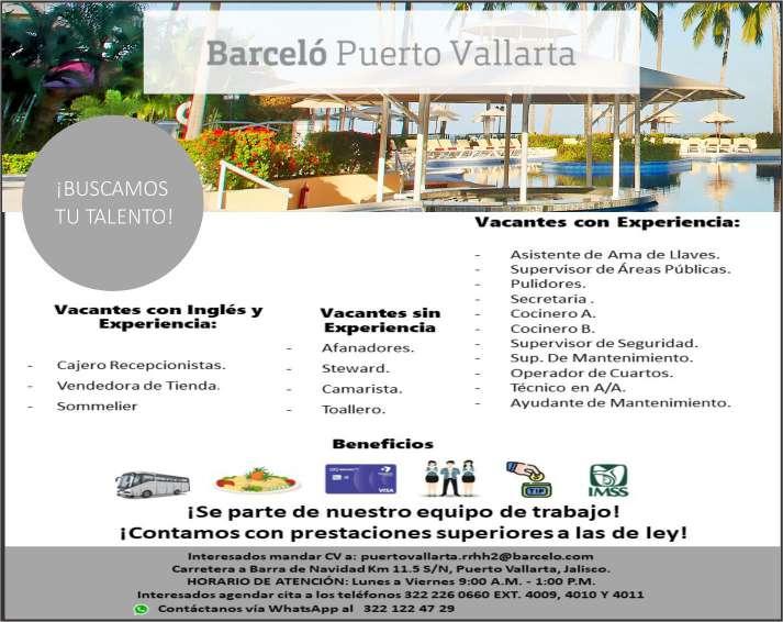 sueldo, comisiones, despensa, prestaciones de ley. Contacto para cita. 322 72 899-58.+