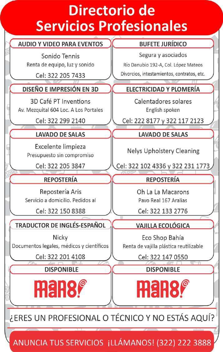 Soy niñera, con experiencia y recomendaciones, busco empleo, de lunes a viernes. 322 26 227-21.* Arquitecto, diseñador. 322 13 292-34.**