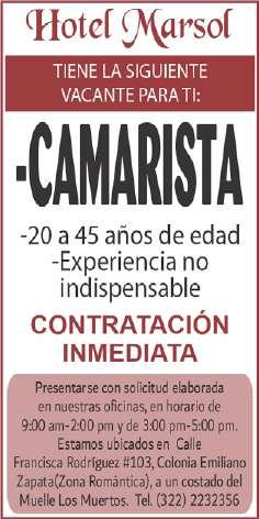 Vallarta y Bahía de Banderas, ofrecemos sueldo base $2,000, prestaciones de ley. Inf. 322 13 492-76.+