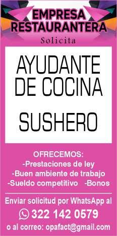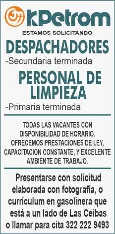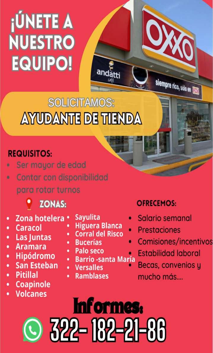 Únete a nuestro equipo como ayudante general, requisitos mínimos, prestaciones de ley, sueldo base $2,000. Inf. 322 13 492-76.+