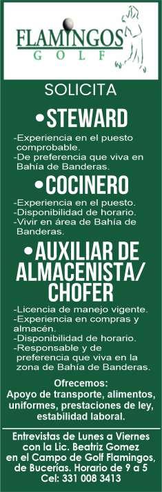 licencia de chofer, experiencia en puesto similar, vivir en la zona Bahía de Banderas. Inf. 329 29 654-88.+