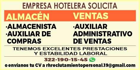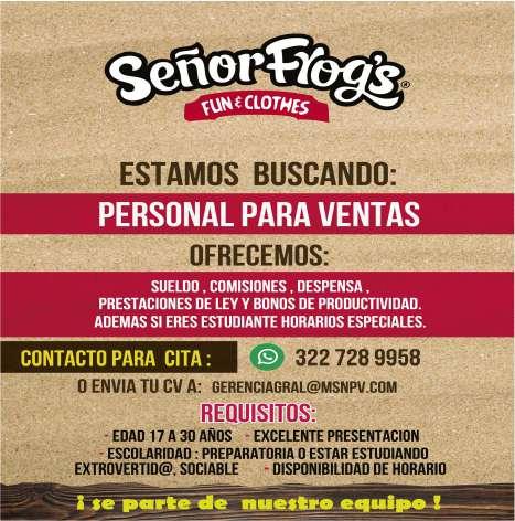 Se solicita personal ventas de mostrador, gusto por la atención al cliente, experiencia en manejo de caja, disponibilidad de horario. Ofrecemos pago semanal, vale de comida, prestaciones de ley. Envíanos WhatsApp al. 322 88 880-29, 322 23 529-83.+