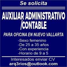 Se solicita auxiliar contable, sexo masculino, manejo de Excel, experiencia en el puesto. Inf. 322 22 102-75, ext. 602.+