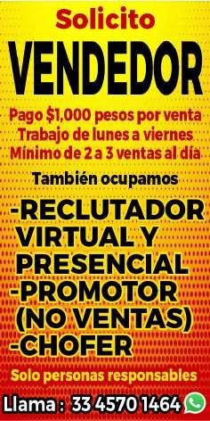 Se solicita chofer vendedor, sexo masculino, licencia vigente, conozca la ciudad de Pto. Vallarta y Bahía de Banderas, ofrecemos sueldo base $2,000,