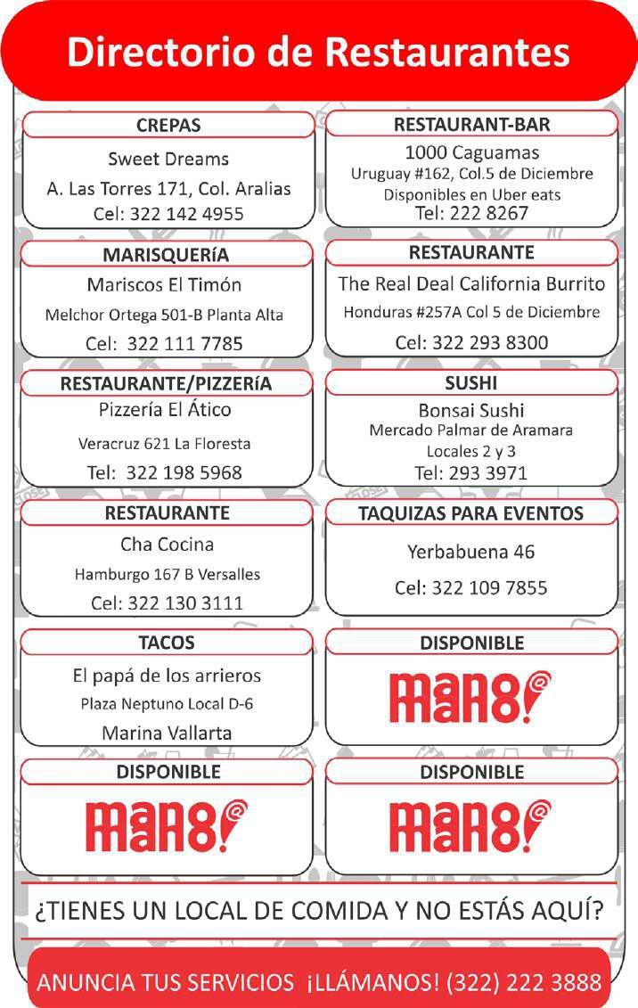 Col. Emiliano Zapata, rumbo a Olas Altas. 322 10 471-90, 322 22 209-04.**
