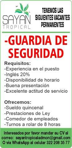 Solicitamos persona de vigilancia, área de Nuevo Vallarta, de 18 a 50 años, con experiencia,