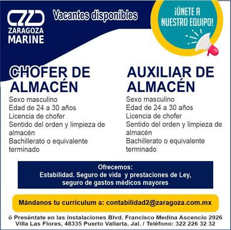 licencia de chofer, experiencia en puesto similar, vivir en la zona Bahía de Banderas. Inf. 329 29 654-88.+