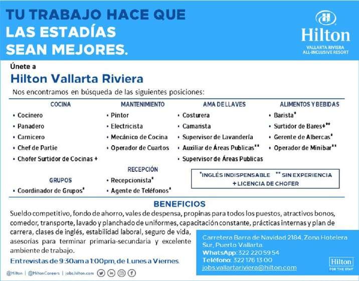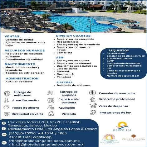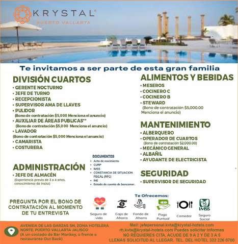 te, conozca la ciudad de Pto. Vallarta y Bahía de Banderas, ofrecemos sueldo base $2,000,