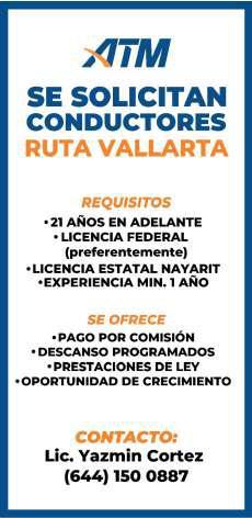 Col. Guadalupe Victoria, 300 meters, $30,000 and 400 meters, $50,000. Info. 322 20 333-50, 322 26 256- 10.+