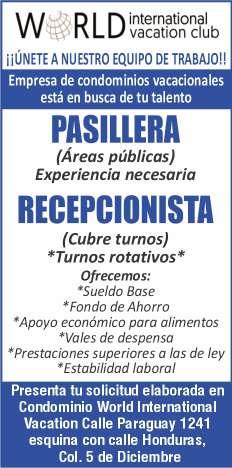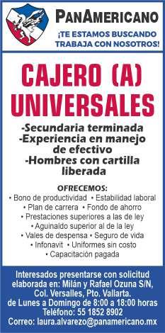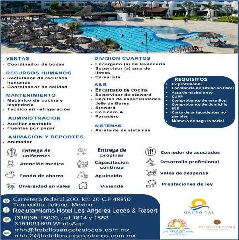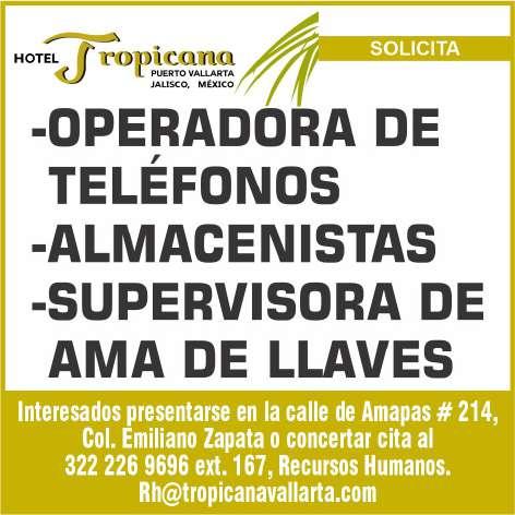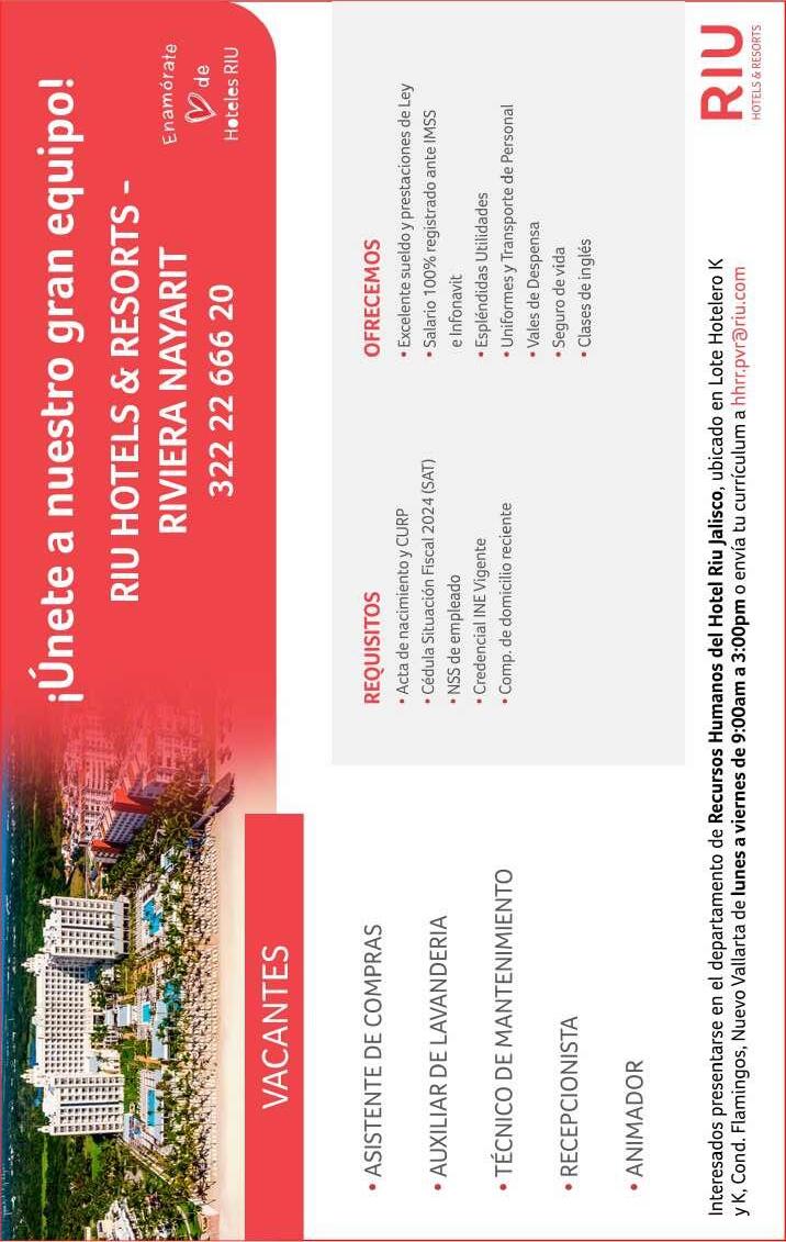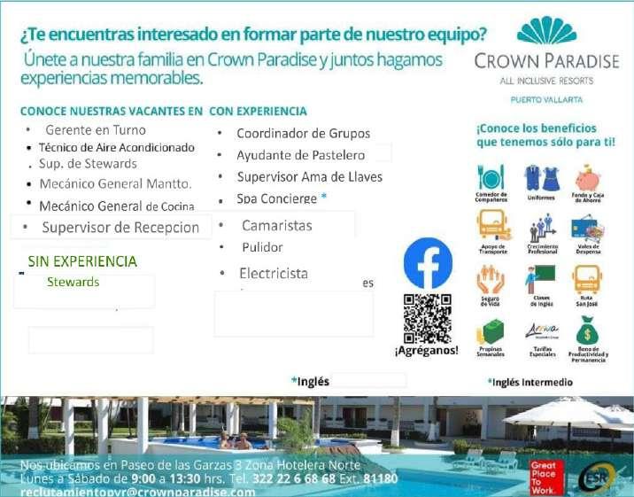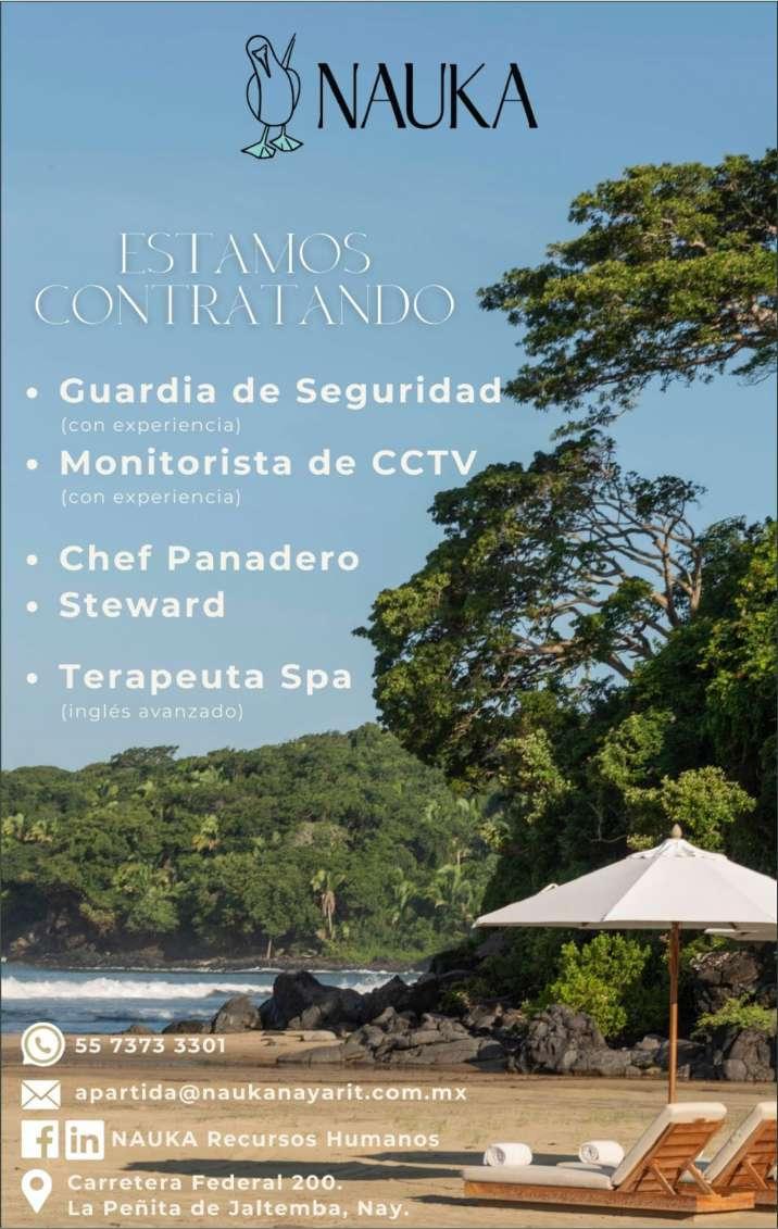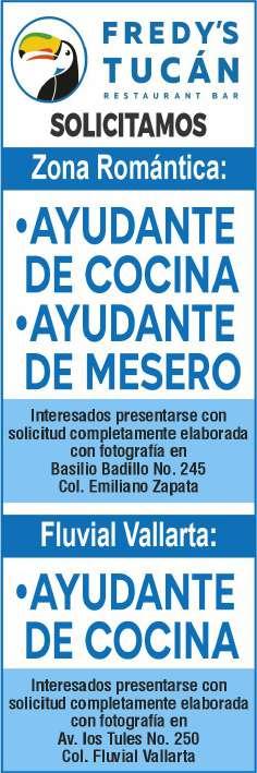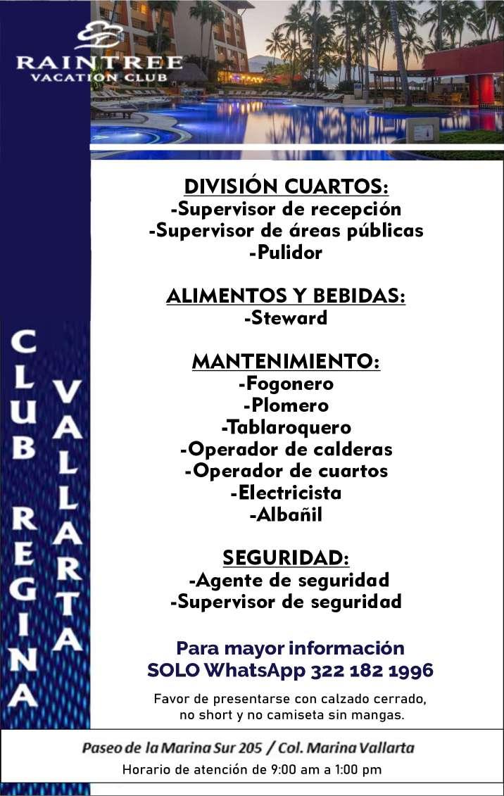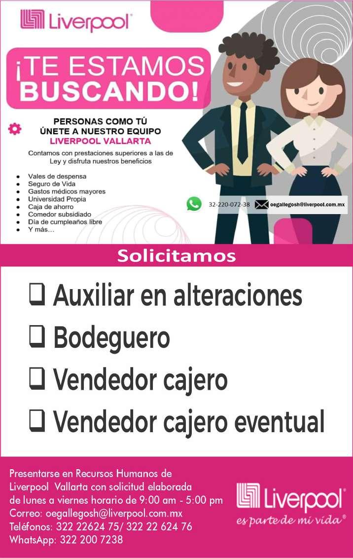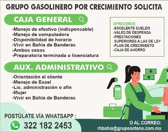 Vallarta y Bahía de Banderas, ofrecemos sueldo base $2,000, prestaciones de ley. Inf. 322 13