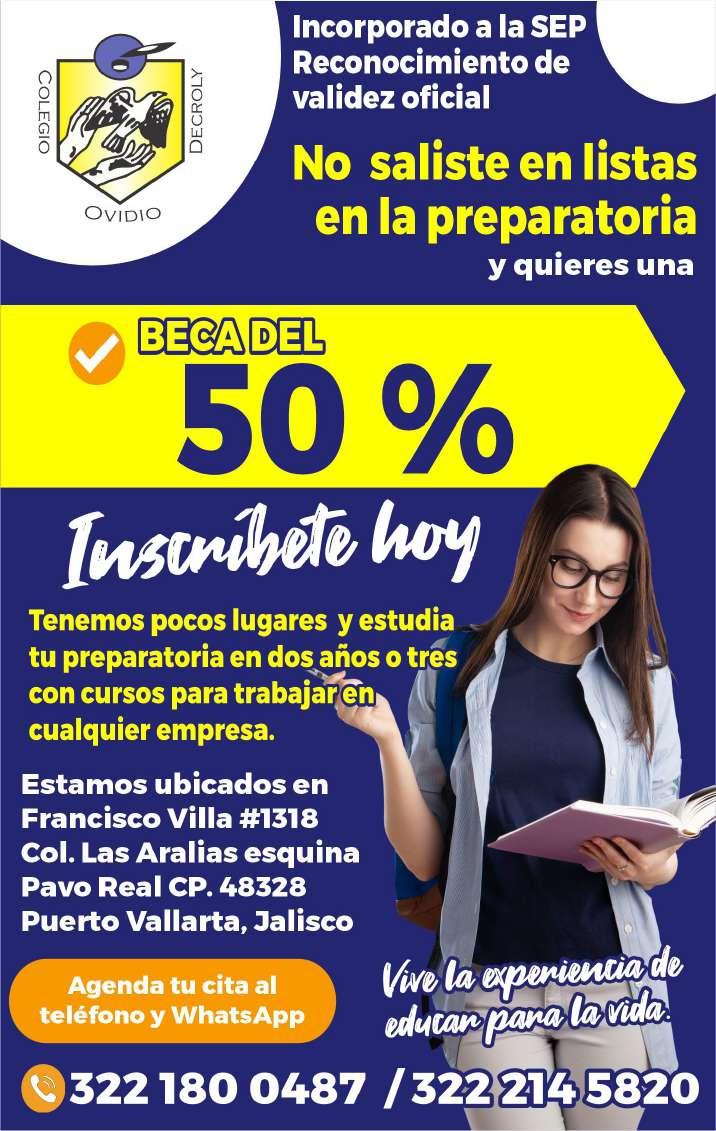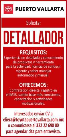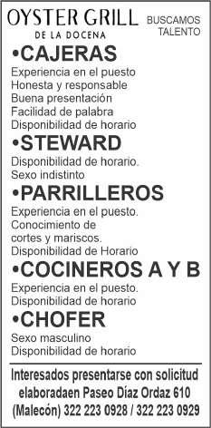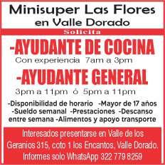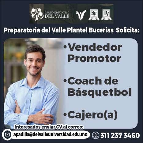 de 23 a 30 años, sexo masculino, preparatoria terminada, disponibilidad de horario. Inf. 322 22 481-41.+