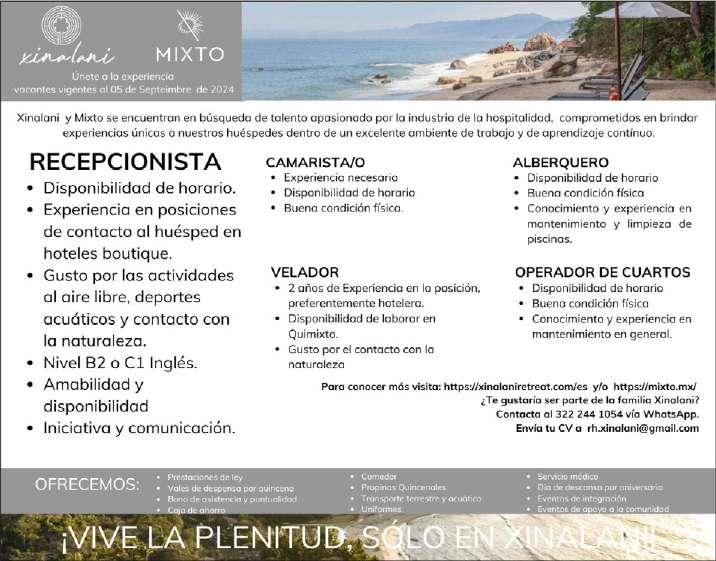 clista, experiencia en puesto similar, vivir en la zona Bahía de Banderas. Inf. 329 29 654-88.+