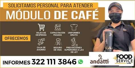 der módulo de café. Ofrecemos vales de despensa, uniformes, caja de ahorro, prestaciones de ley. Inf. 322 11 138-46.+