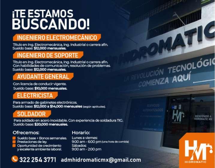 Únete a nuestro equipo como ayudante general, requisitos mínimos, prestaciones de ley, sueldo base $2,000. Inf. 322 13