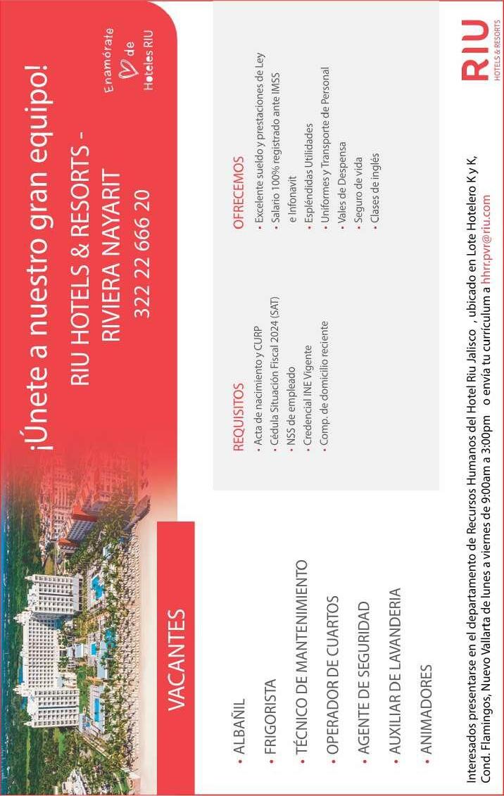 Vallarta y Bahía de Banderas, ofrecemos sueldo base $2,000, prestaciones de ley. Inf. 322 13 492-76.+