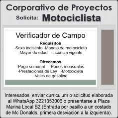 chofer/cobrador, sexo masculino, licencia de chofer y motociclista, experiencia en puesto similar, vivir en la zona Bahía de Banderas. Inf. 329 29 654-88.+