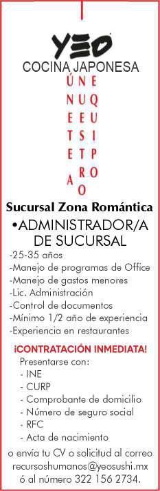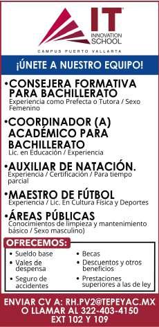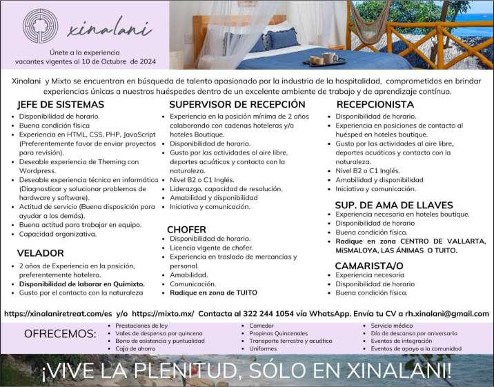 en puesto similar, vivir en la zona Bahía de Banderas. Inf. 329 29 654-88.+