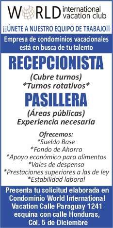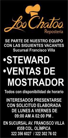 mos sueldo semanal, vales de despensa, bonos, seguro de vida. Inf. 331 59 961-76, 333 95 589-54.+
