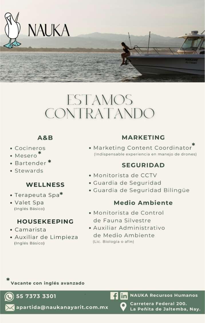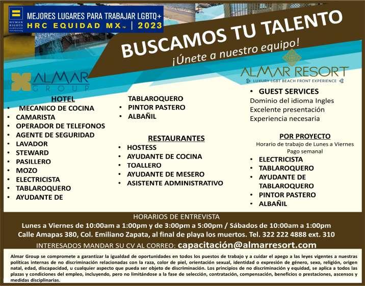 Únete a nuestro equipo de trabajo, solicitamos agentes de seguridad, inglés básico, experiencia en el puesto, disponibilidad de horario. Inf. 322 22 103-95.+