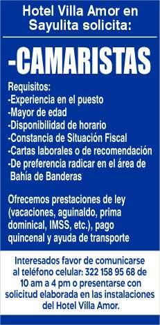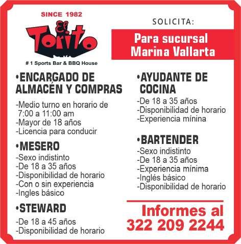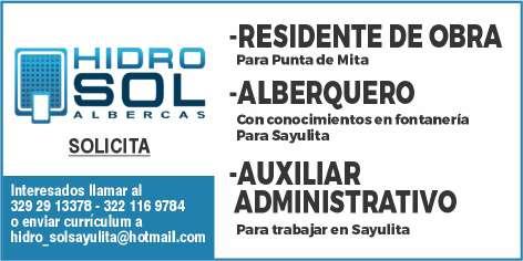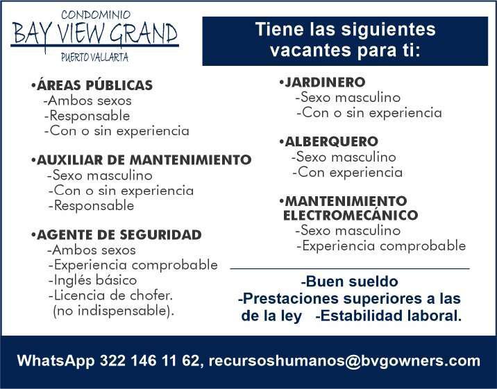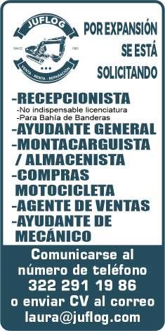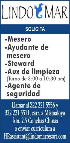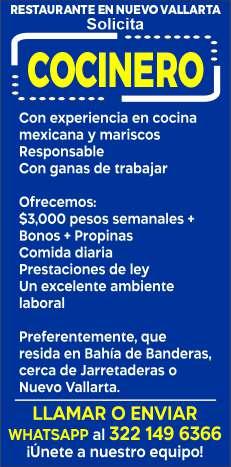 cia, área de Nuevo Vallarta, de 18 a 50 años, con experiencia, turno de 8 hrs., sueldo quin-