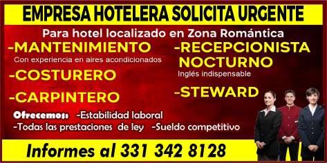 sueldo, prestaciones de ley. Inf. Calle Los Pinos #109, Col. Los Sauces. Tel. 331 89 531-04.+