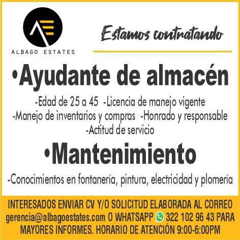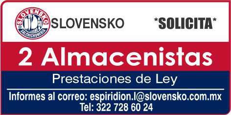 Se busca auxiliar de almacén, mayor de 20 años, facilidad de traslado a Mezcales. Ofrecemos sueldo semanal, vales de despensa, bonos, seguro de vida. Inf. 331 59 961-76, 333 95 589-54.+