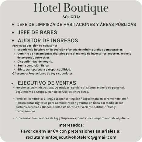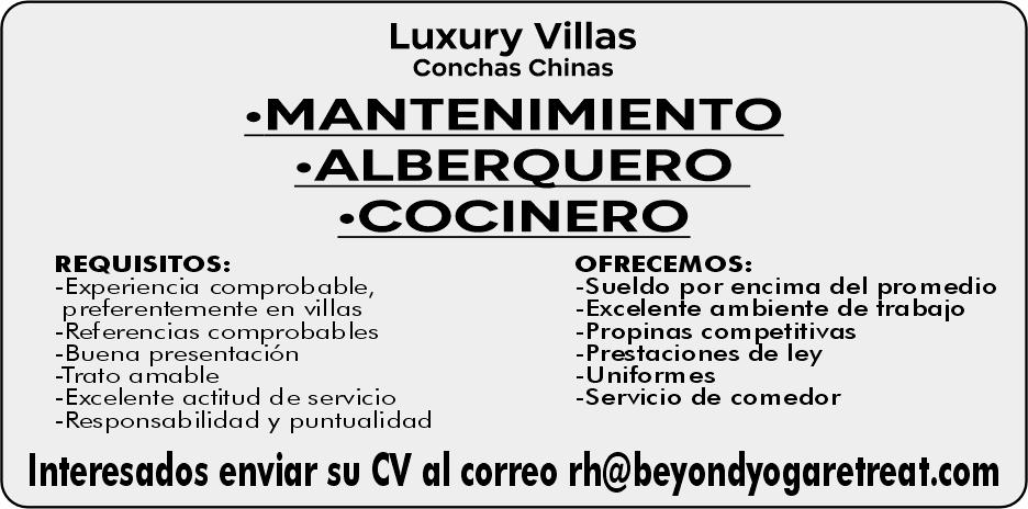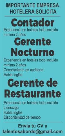 con inglés, mantenimiento. Envía tu cv o solicitud al correo: administracion@canopyriver. com