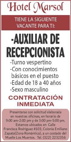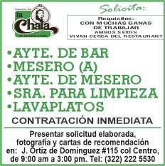 riencia en el puesto, disponibilidad de horario. Inf. 322 22 103-95.+