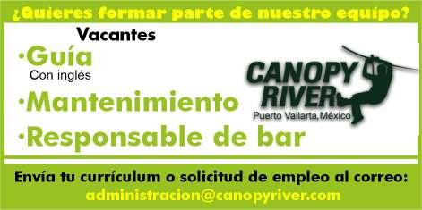 ¿Quieres formar parte de nuestro equipo? Solicitamos, guía con inglés, mantenimiento. Envía tu cv o solicitud al correo: administracion@canopyriver. com