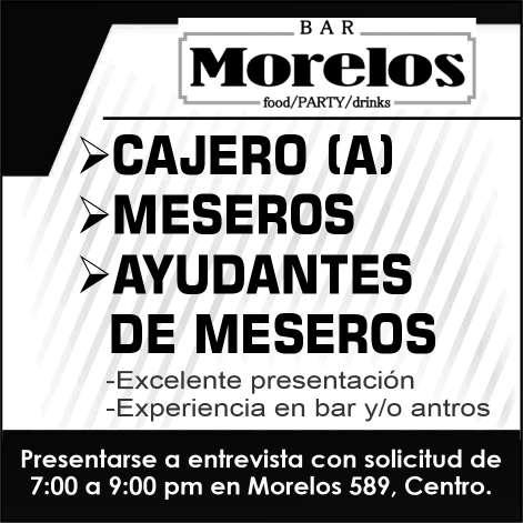 al cliente, buena presentación, uso de equipo de cómputo. Interesados presentarse en calle Lucerna #107, col Versalles.