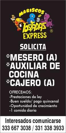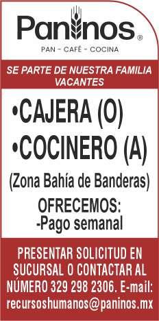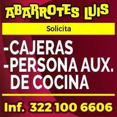 Minisúper solicita cajeras y auxiliar de cocina. Ofrecemos pago semanal. Inf. 322 10 06606.+