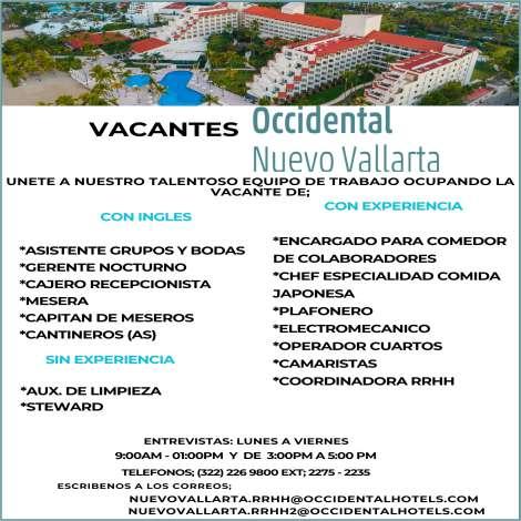 Estamos contratando Operadora exclusivo Vallarta, licencia