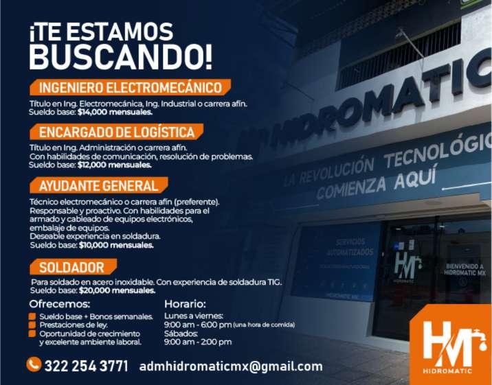 18 a 50 años, con experiencia, turno de 8 hrs., sueldo quincenal $4,200 pesos. Informes. 3222971046 .+