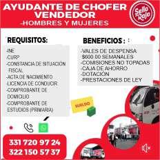 Estamos contratando Chofer, licencia de chofer vigente, experiencia mínima 1 año en puesto similar. Ofrecemos excelente sueldo, prestaciones de ley. Inf. Calle Los Pinos #109, Col. Los Sauces. Tel. 331 89 531-04.+