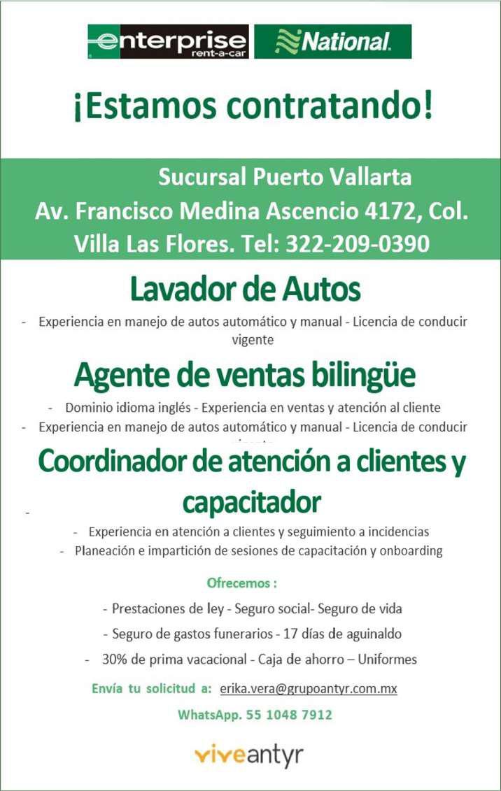 Estamos contratando Operadora exclusivo Vallarta, licencia estatal Nayarit, 1 año de experiencia, 21 años en adelante.