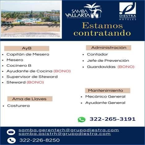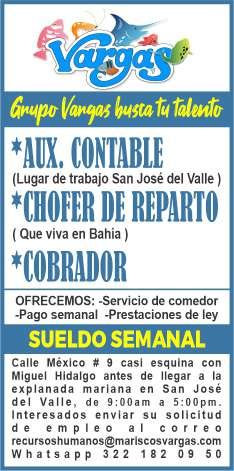 sexo masculino, experiencia el puesto, trabajo en equipo, ofrecemos prestaciones de ley. Enviar CV al correo: contabilidad2@anfitriondemexico.com. mx Tel. 322 22 281-30.+